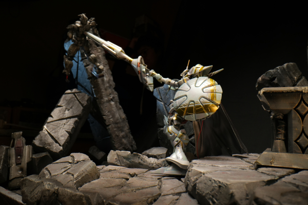 Lighting Modification: LED lights mounted on the Zaku and Gundam enhance realism and visual focus.