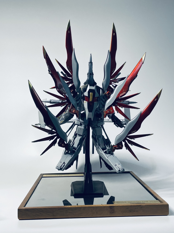 In a mystical realm, Suletta, the embodiment of grace and life, brings healing and harmony through her powers. To protect her stands Calibarn, a mighty sentinel forged as her guardian. When darkness threatens the Eternal Grove, Suletta summons her light to purify the land while Calibarn unleashes his strength to shield her from harm. Together, they embody the perfect balance,gentleness and power, hope and protection,forever remembered as the Grace and Guardian.Im kit bashing by putting hg kimiki burning Gundam fire effect into Suletta and this diorama I'm using 2 hg Gundam Calibarn to make 2 hoverboard.