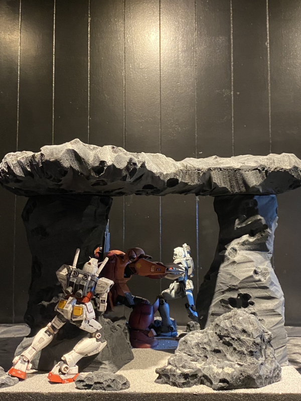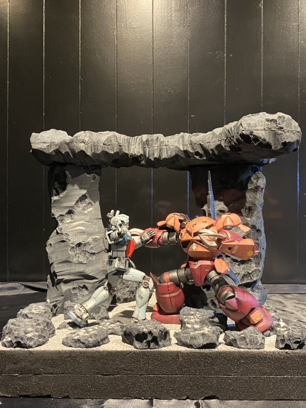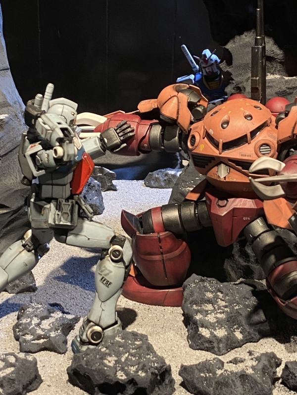 アニメ・ガンダム第29話の名シーンにて、シャア専用ズゴックがジムを撃破する場面を、スレッガーさんが乗っていると想像して、撃破されないスレッガー専用ジムを作りました。