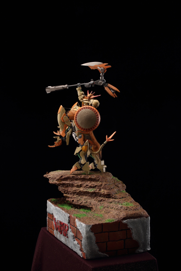在荒原深處,沉睡著一尊鋼彈。牠誕生於戰火最熾烈的年代,他擁有敏捷的速度與力量。巨鎌象徵審判,每一次揮舞都能斬斷黑暗與混亂。當世界陷入危機,牠便會自岩峰覺醒,以孤獨的姿態面對無盡敵意。傳說中,牠是最後的守護者,也是帶來黎明的存在。