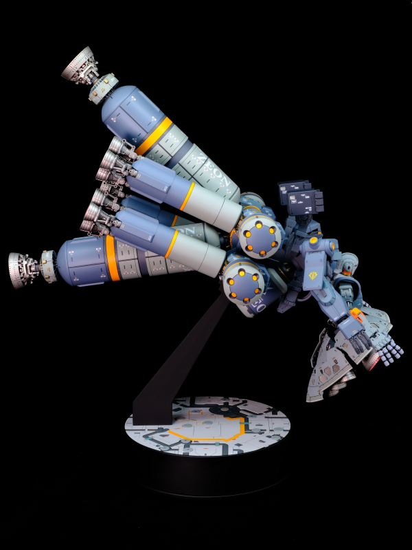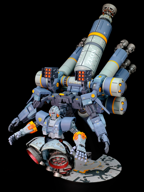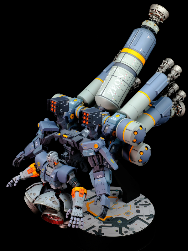 A custom high speed variation of the Zeong, equipped with an additional pair of arms armed with rocket launchers and a specially developed backpack in the Zeong color scheme. Piloted by Char Aznable, this advanced unit is designed for intense space combat. This build is based on the RG Zeong, with shoulders from the MG Rick Dom 1.5. The extra arms are taken from the HG Typhoeus Gundam Chimera, fitted with rocket launchers from the MG Ver Ka FA Gundam Thunderbolt, and tanks from the HGUC Kshatriya Repaired. The connector between the Zeong and the arms unit comes from the HG Big Gun Zaku II Thunderbolt, while the piece linking the arms unit to the backpack was scratch built from pla plates. The backpack is a kitbash of multiple sets. Its main structure is from the MG Ver Ka Psycho Zaku II Thunderbolt, with two large tanks built from a combination of MG Ver Ka Psycho Zaku II Thunderbolt, HG Big Gun Zaku II Thunderbolt, and thrusters/burners from another RG Zeong. The side tanks combine parts from the HGUC Kshatriya Repaired and the RG Zeong. Only official Bandai kits, decals, and crafting materials permitted under the regulations were used. The base diorama was created using five Bandai Action Base 1, cut into an 8 inch circle, with the support arm for the Zeong adapted from the MG Ver Ka Psycho Zaku II Thunderbolt. For this years Bandai GBWC, I wanted to challenge myself and create something unlike my previous works. It was a demanding journey, but I am proud of the result and how this custom build turned out.