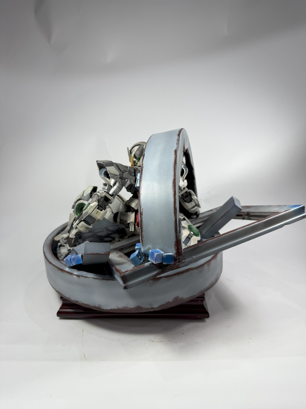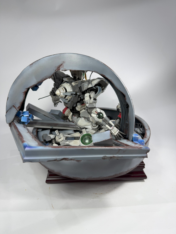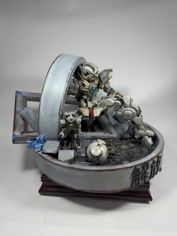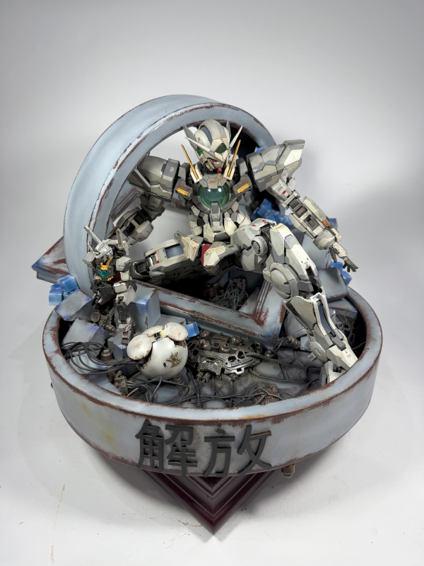 My diorama, titled "The Riddance," is a symbolic narrative about the relentless pursuit of freedom. The custom PG Exia stands as the protagonist, having just broken through the oppressive and complex engineering of the base, which represents the system it has escaped. Every detail, from the custom-scribed lines to the unique paint, embodies its will to be free. Watching over its path is the Core Gundam, a silent guardian ensuring its liberation is complete. The Haros, once mere power sources for the old system, have been repurposed. They now act as beacons of energy, illuminating the new path forward. This piece is not just about destruction, but about the triumphant act of leaving confinement behind.